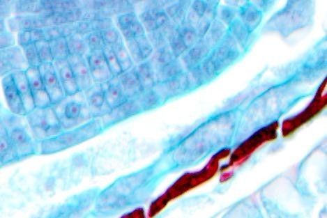 圖7玉米根縱切,40×。調(diào)整下曲線,效果好很多。