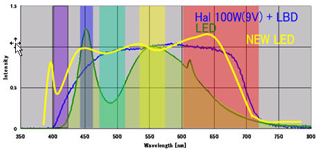 (1)Olympus全新的LED具有與鹵素?zé)粝嗨频牟ㄩL(zhǎng)特性,因此能從其發(fā)射中檢到紫/青/紅等目前商業(yè)化LED難以提供的光譜成分.
